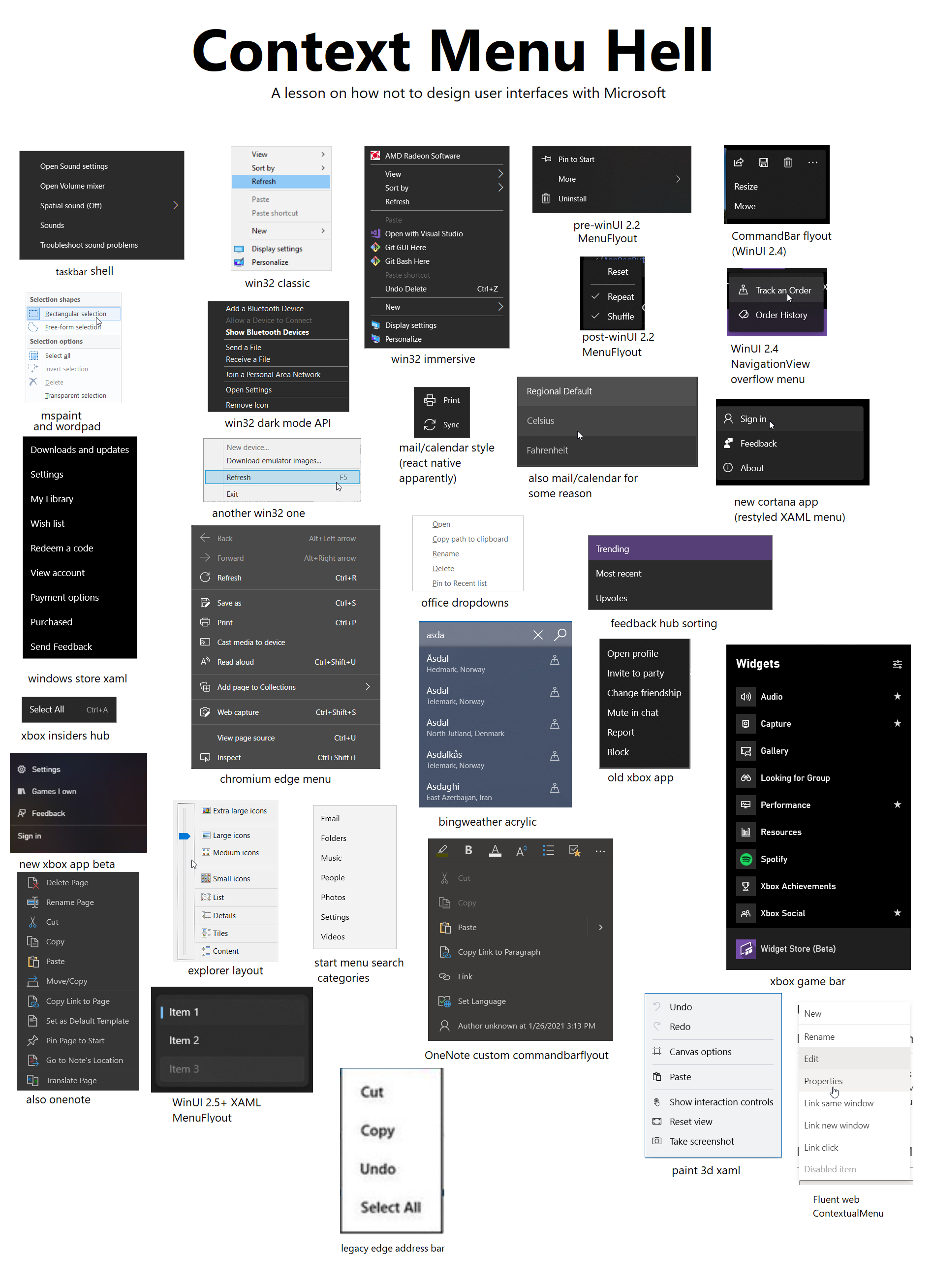 E.g. the pervasive use of transparency means that you have text overlayed on text all over the place, so just literally can't read things.